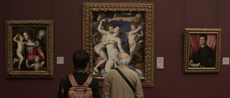Where the film also succeeds in flawlessly making its viewers feel fully immersed in its story is the way the works themselves are shot. Each painting fills the entire frame, as though each viewer’s own pair of eyes is gazing directly on it, rather than through the conduit of a camera lens. As such, the content of the paintings and their stories inform the narrative and the story of the film as much as the dialogue and the presentation of the gallery’s inner workings do.